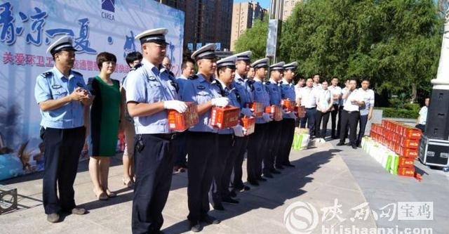 8月10日上午,由宝鸡市房地产经纪人协会主办的 “清凉一夏.感恩有你”慰问活动在宝鸡市高新广场举行,来自宝鸡高新园林环卫市政建设管理有限公司环卫工人、宝鸡市公安局交警支队高新大队公安民警、宝鸡市城市管理综合执法局高新大队城管执法队员代表共100余人参加了活动。