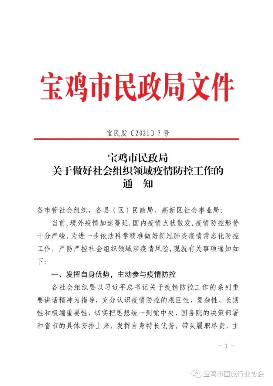 关于转发《宝鸡市民政局关于做好社会组织领域疫情防控工作》的通知 |