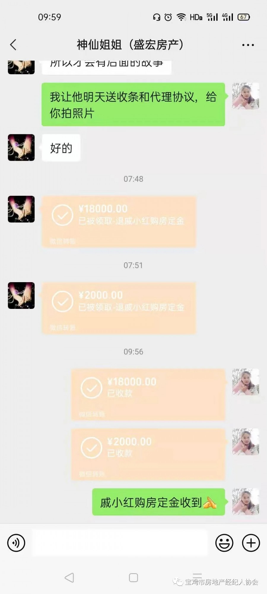 代戚小红收中介款: