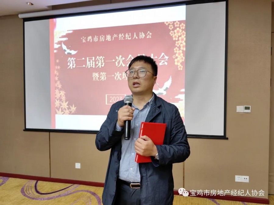 2023年5月30日,宝鸡市房地产经纪人协会第二届第一次会员大会在建国饭店三楼会议室圆满召开,会议选举产生了协会第二届理事会领导班子。