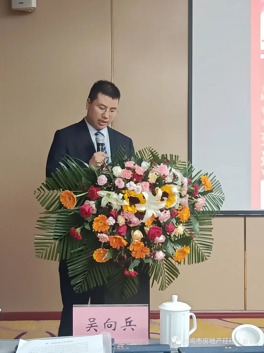 新当选的第二届宝鸡市房地产经纪人协会会长吴向兵表态发言。吴向兵会长首先对全体会员及工作人员的支持与信任表示感谢,协会新一届理事会将继续秉承“共享、共进、共赢”的宗旨,发挥协会桥梁纽带作用;健全会员服务体系,充分发挥好引领示范作用。继续加强房地产经纪人行业基层工作,发挥协会的带头作用,通过党建带动协会建设,助推行业高质量发展。相信在社会组织党委和上级主管部门的领导下,新一届协会领导班子一定不负众望,积极进取,开创房地产经纪人行业工作新局面,并对今后的工作,作了明确部署。